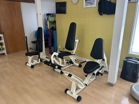 自分の筋力に合わせて自分で負荷がコントロールできるので、力の弱い方は軽い負荷で、力のある方にはその力に応じた負荷での運動が可能。いつでも好きな時にはじめて止められる。そのためリハビリテーションからトレーニングまで、幅広い年齢層の方々の健康維持・増進に役立つマシンです。